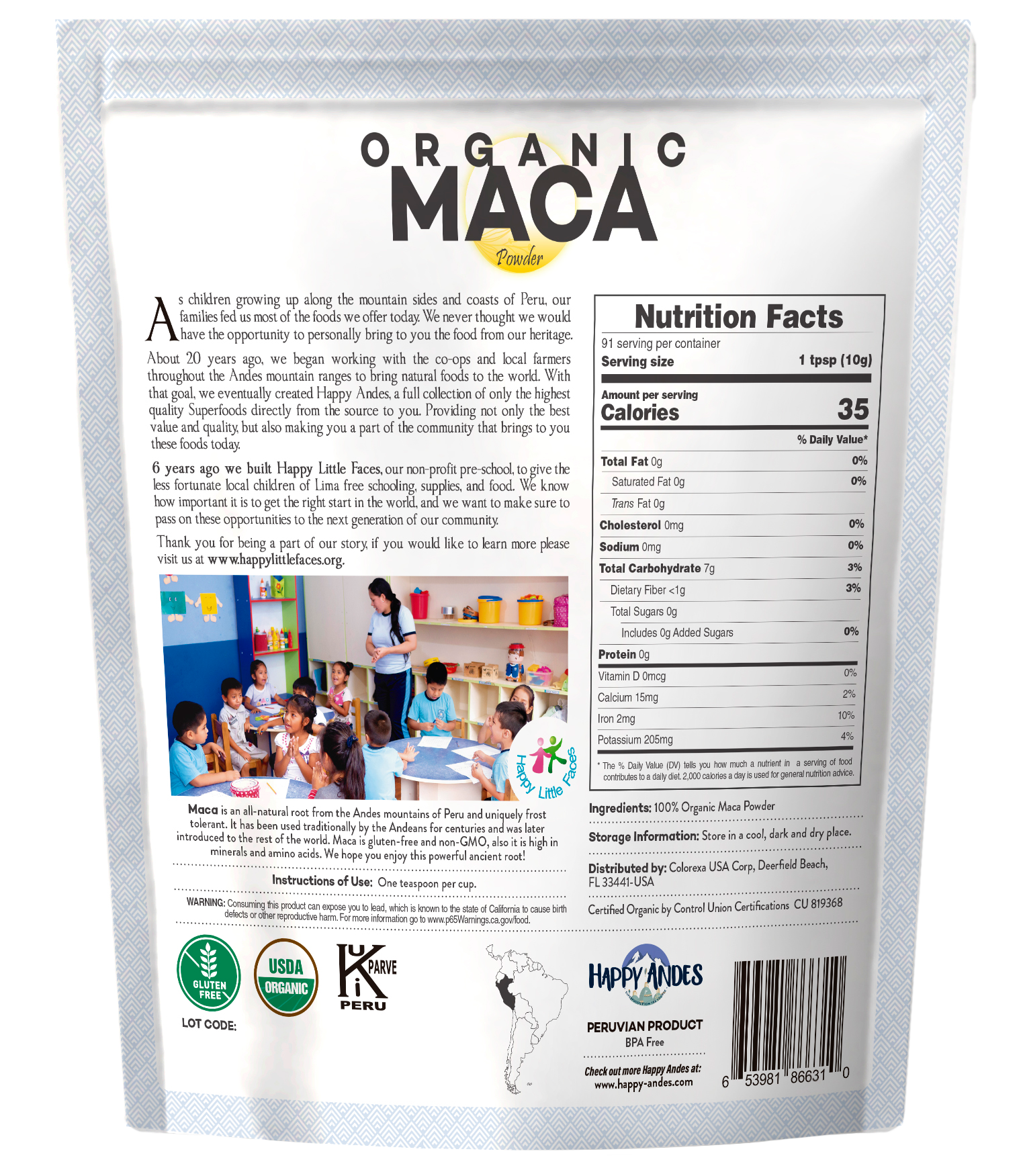 Happy Andes Maca is one of our beloved foods essential in our mission. Not only do we use it ourselves, we also give back through our non-profit organization, Happy Little Faces. This is our free preschool for impoverished children in our local Peruvian community.