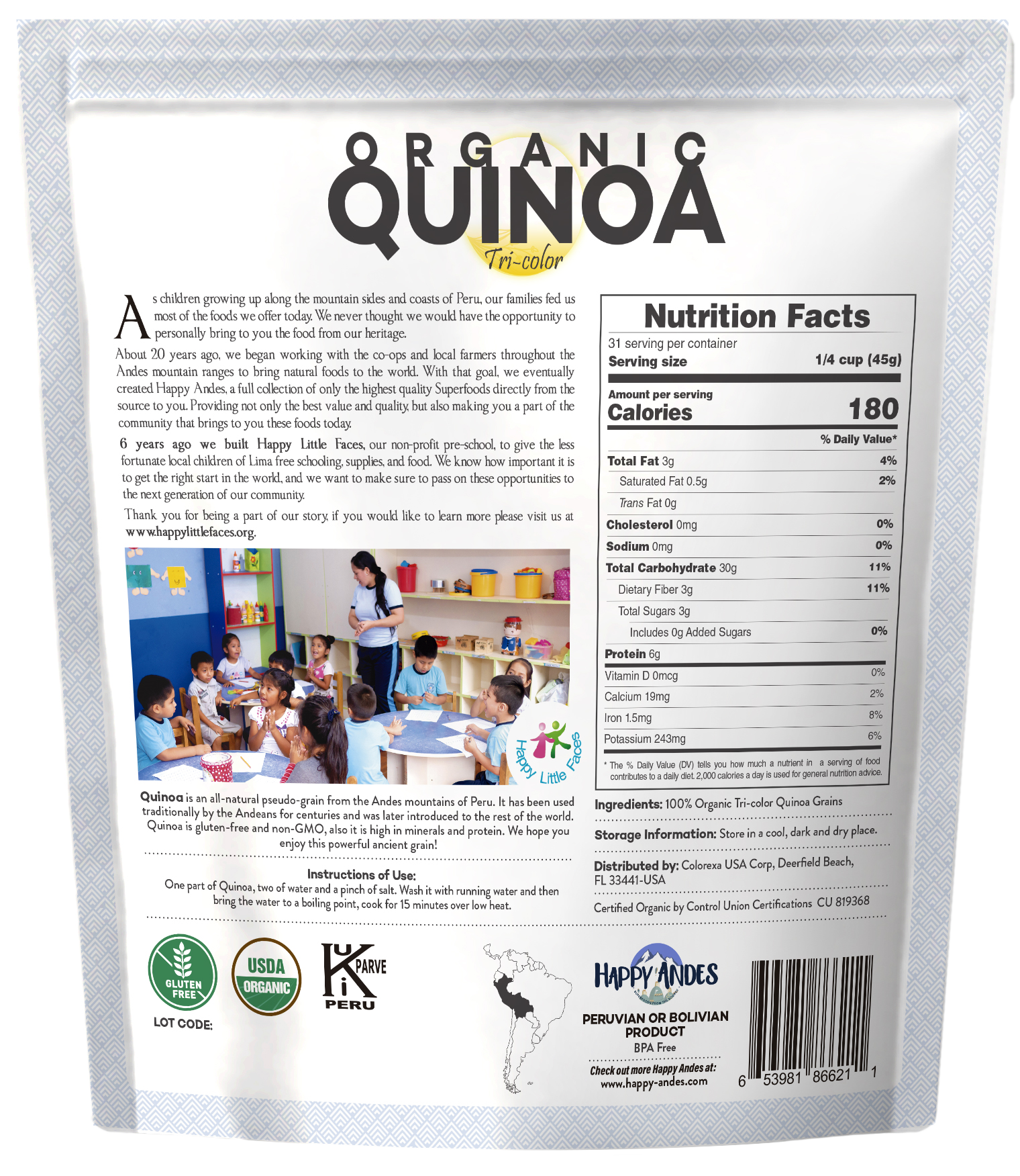 Happy Andes Quinoa is one of our beloved foods essential in our mission. Not only did we grow up as children eating Quinoa in the Andes mountains, we also give back through our non-profit organization, Happy Little Faces. This is our free preschool for impoverished children in our local Peruvian community.